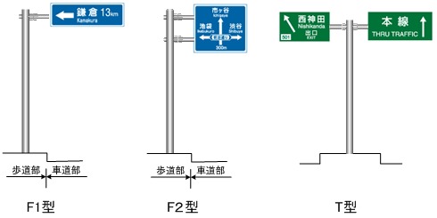 関連用語:道路標識 案内標識 路側式 門型式(オーバーヘッド式) 添架式